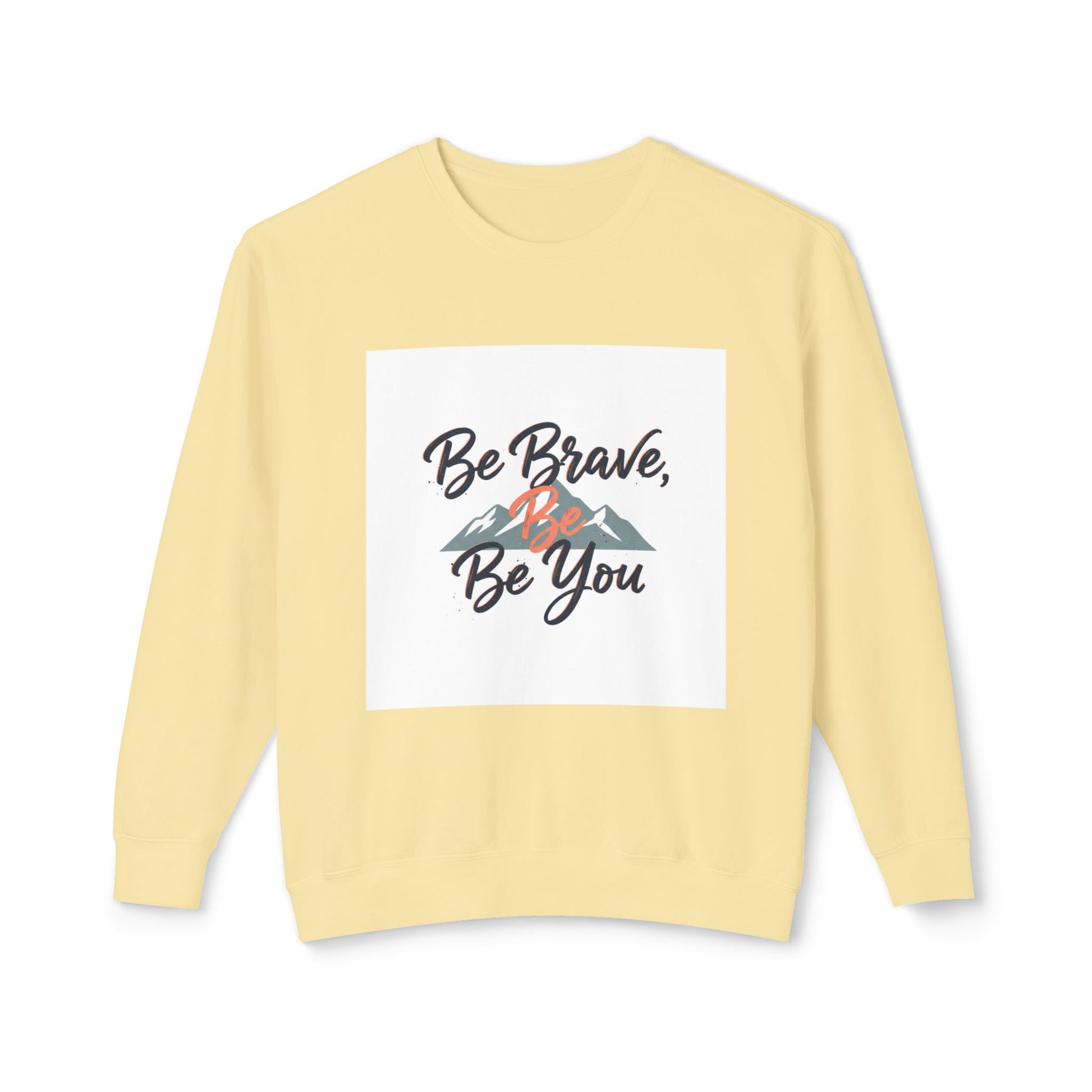Quiet, soft, and encouraging — this lightweight crewneck settles in like a trusted companion. The hand-drawn mountain graphic and handwritten “Be Brave, Be You” message sit centered and calm, a gentle reminder on chilly mornings or slow coffee breaks. The relaxed fit and breathable 100% ring-spun cotton let movement feel easy; the ribbed cuffs and hem keep the silhouette tidy without squeezing. Wear it on trailheads, study sessions, or airport layovers — it layers without bulk and carries a quiet confidence that nudges you forward.